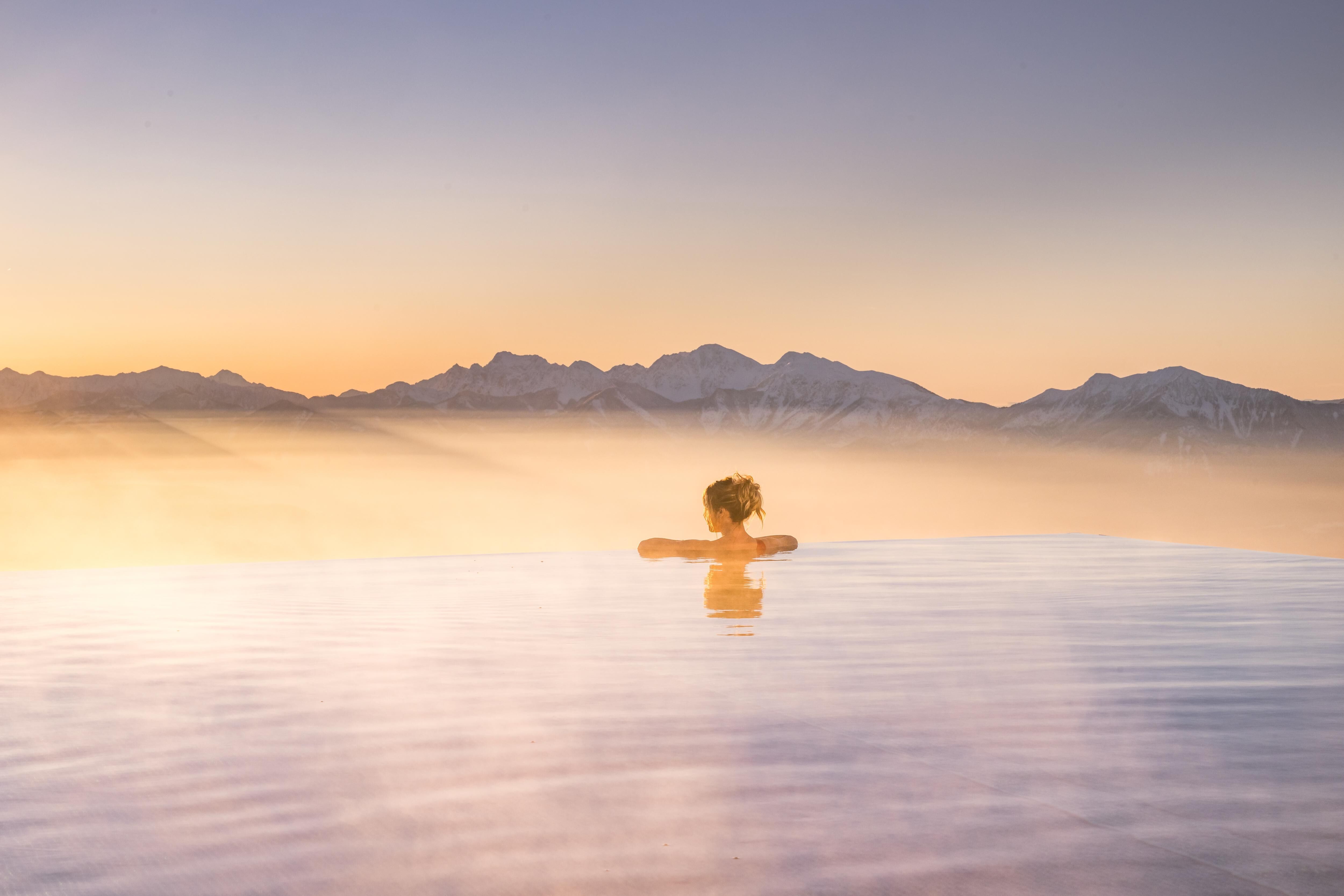在阿尔卑斯山中央的疗养池中,高山或湖泊尽收眼底,一些疗养度假村还能将非凡的全景尽收眼底,让身心得到充分放松。